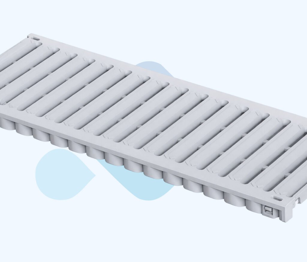 200×500 mm plastik ızgara, drenaj kanallarıyla uyumlu yapıdadır ve yüzey suyunun kontrollü şekilde tahliyesini sağlar.
