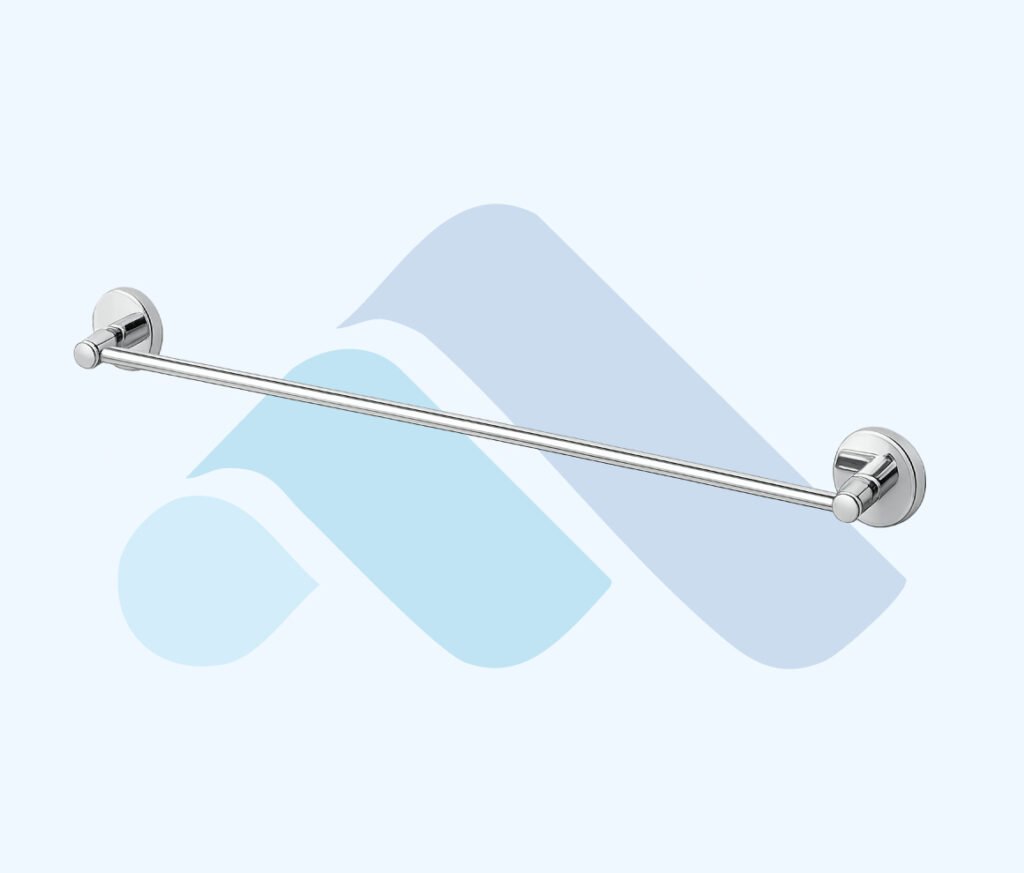 parlak krom kaplama metal gövdesi ve ince silindirik bar tasarımı ile hafif ve dengeli bir kullanım sunar. Uzun tek parça çubuk formu, havlunun rahatça asılmasını ve düzgün şekilde kurumasını sağlar.
