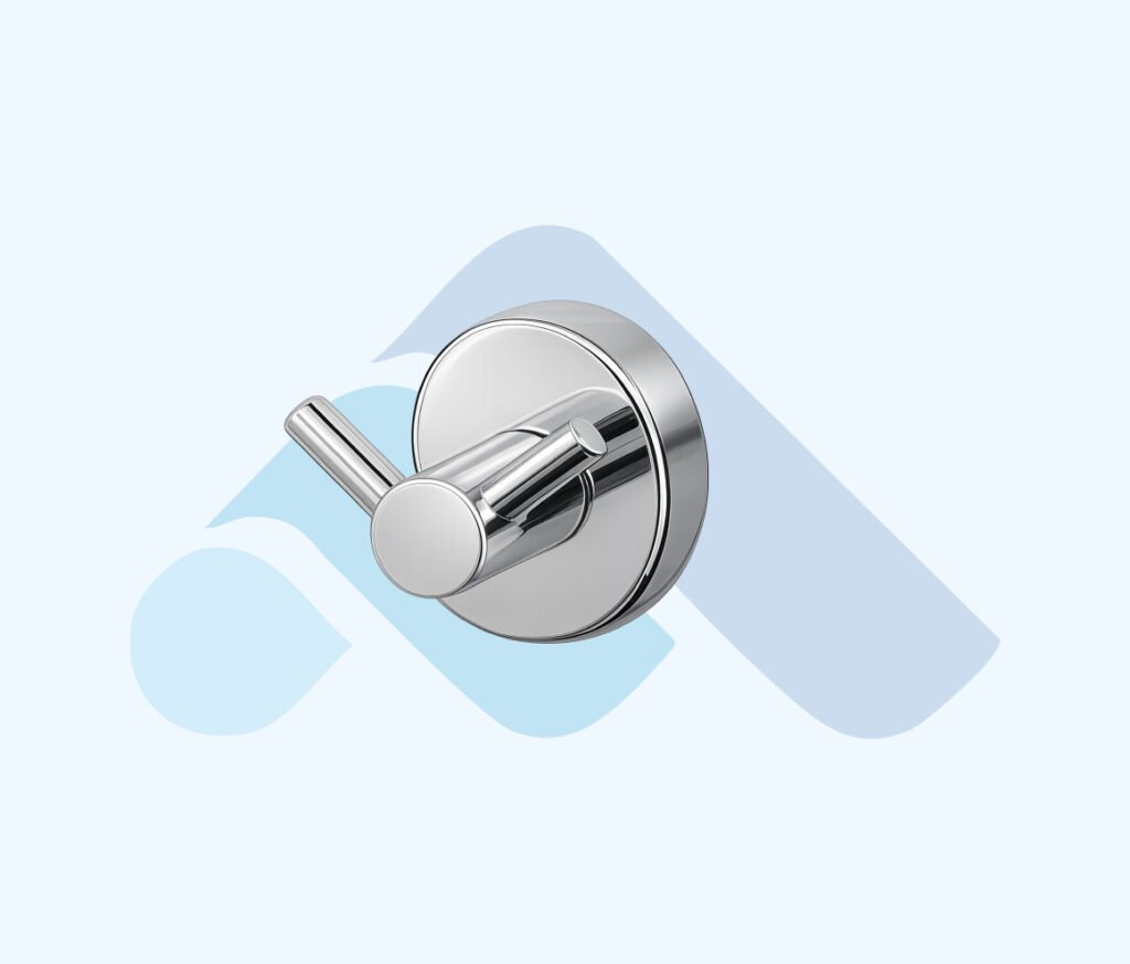 parlak krom kaplama metal gövdesi ve çift çıkışlı silindirik askı tasarımı ile kompakt alanlarda pratik kullanım sunar. İki ayrı askı ucu, havlu ve bornozların düzenli şekilde asılmasını sağlar.