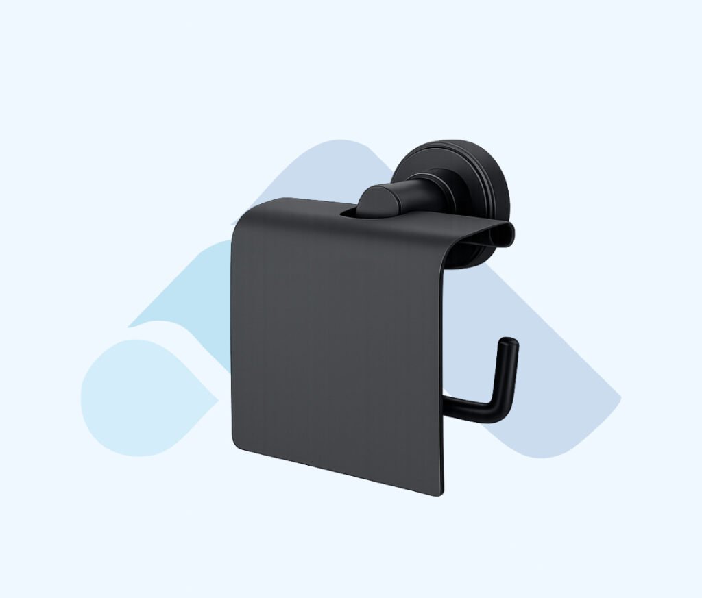 siyah kaplama ve modern kapaklı tasarımı ile banyolarda sade ve korunaklı bir kullanım sunar. Tuvalet kâğıdının düzenli ve estetik şekilde muhafaza edilmesini sağlar.