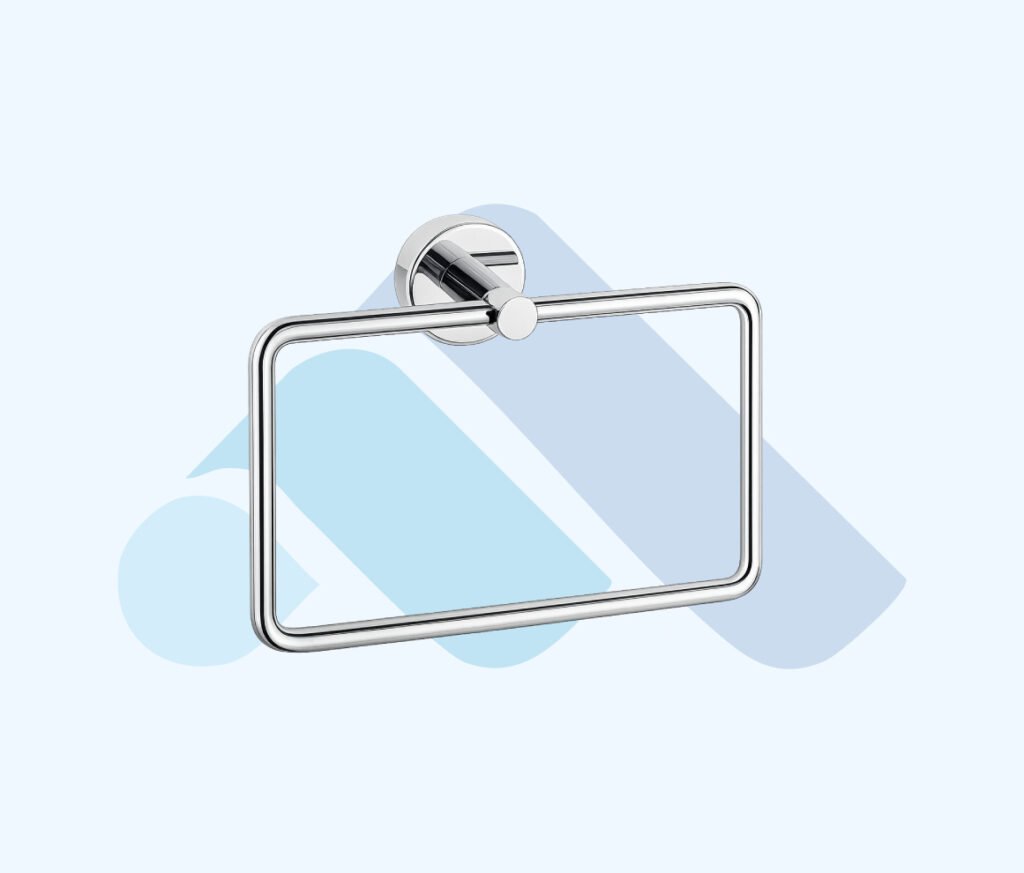 parlak krom kaplama metal gövdesi ve köşeleri yumuşatılmış kare çerçeve formu ile sade ve dengeli bir tasarım sunar. Geniş iç hacimli çerçeve yapısı, el havlusunun düzenli ve sabit şekilde asılmasını sağlar.