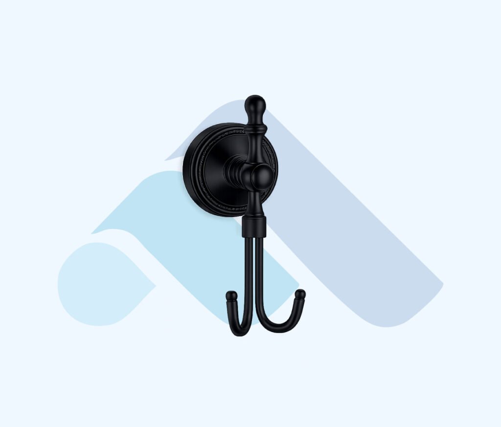 siyah kaplama çift kancalı tasarımı ile bornoz, havlu ve kişisel eşyalar için düzenli ve işlevsel bir kullanım sunar. Duvar üzerinde minimum alan kaplayarak maksimum verim sağlar.