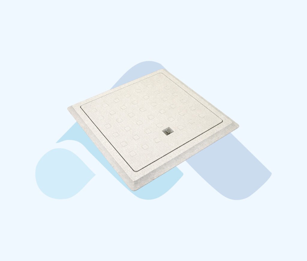 Kare polimer kapak, rögar ve altyapı erişim noktalarında güvenli kapama ve uzun süreli kullanım için tasarlanır. Dengeli gövde yapısı sayesinde yükü yüzeye eşit dağıtır.