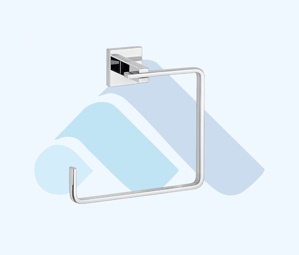 parlak krom kaplama metal gövdesi ve kare form çerçeve tasarımı ile modern ve net hatlara sahip bir görünüm sunar. Kapalı çerçeve yapısı, el havlusunun düzenli ve sabit şekilde asılmasını sağlar.