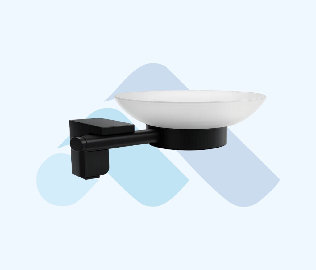 PREMIUM BLACK – 1004 Sabunluk, siyah kaplama metal gövdesi ve modern tasarımı ile banyolarda güçlü ve minimal bir görünüm sunar. Sabunun düzenli ve hijyenik şekilde konumlandırılmasını sağlar.