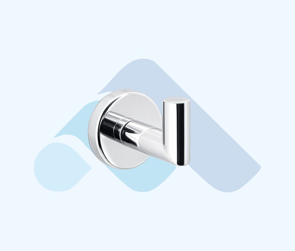 parlak krom kaplama metal gövdesi ve çift askı fonksiyonu ile kompakt ve işlevsel bir kullanım sunar. İki ayrı askı noktası sayesinde bornoz, havlu veya aksesuarların düzenli şekilde asılmasını sağlar.