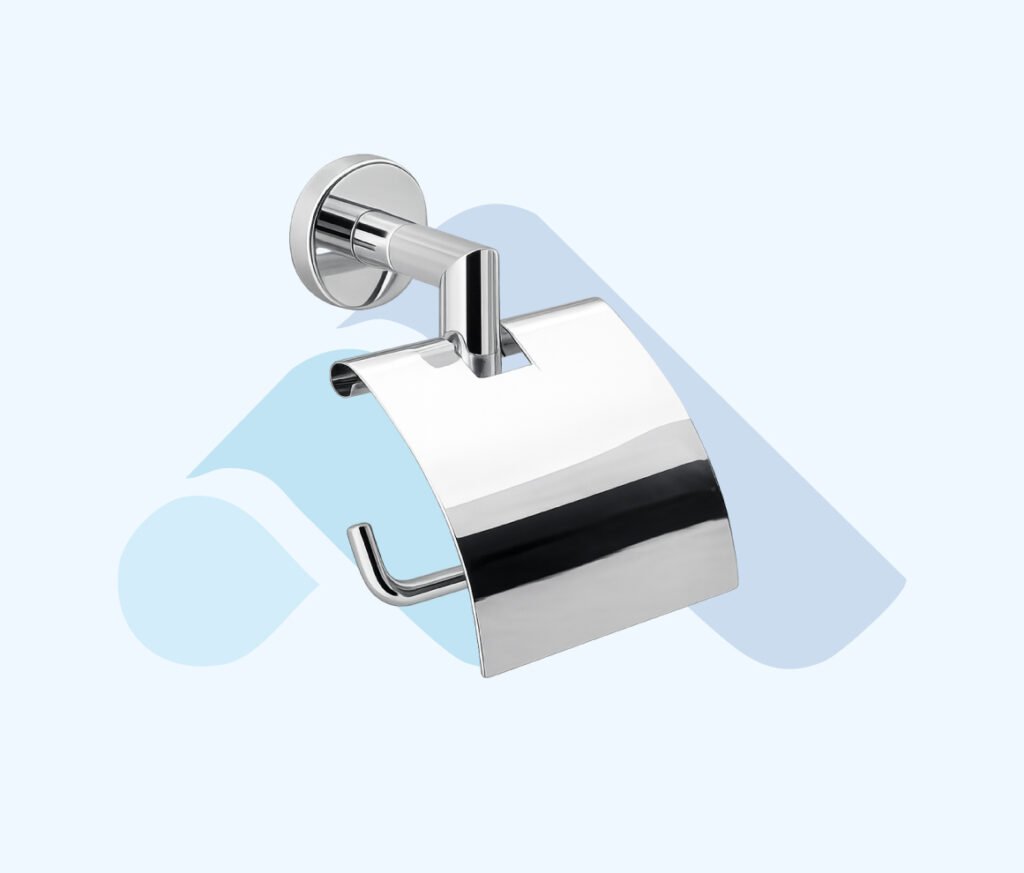 parlak krom kaplama metal gövdesi ve üst kapaklı tasarımı ile modern ve dengeli bir görünüm sunar. Kapak formu, kağıt rulonun sabit ve düzenli şekilde konumlandırılmasını sağlar.