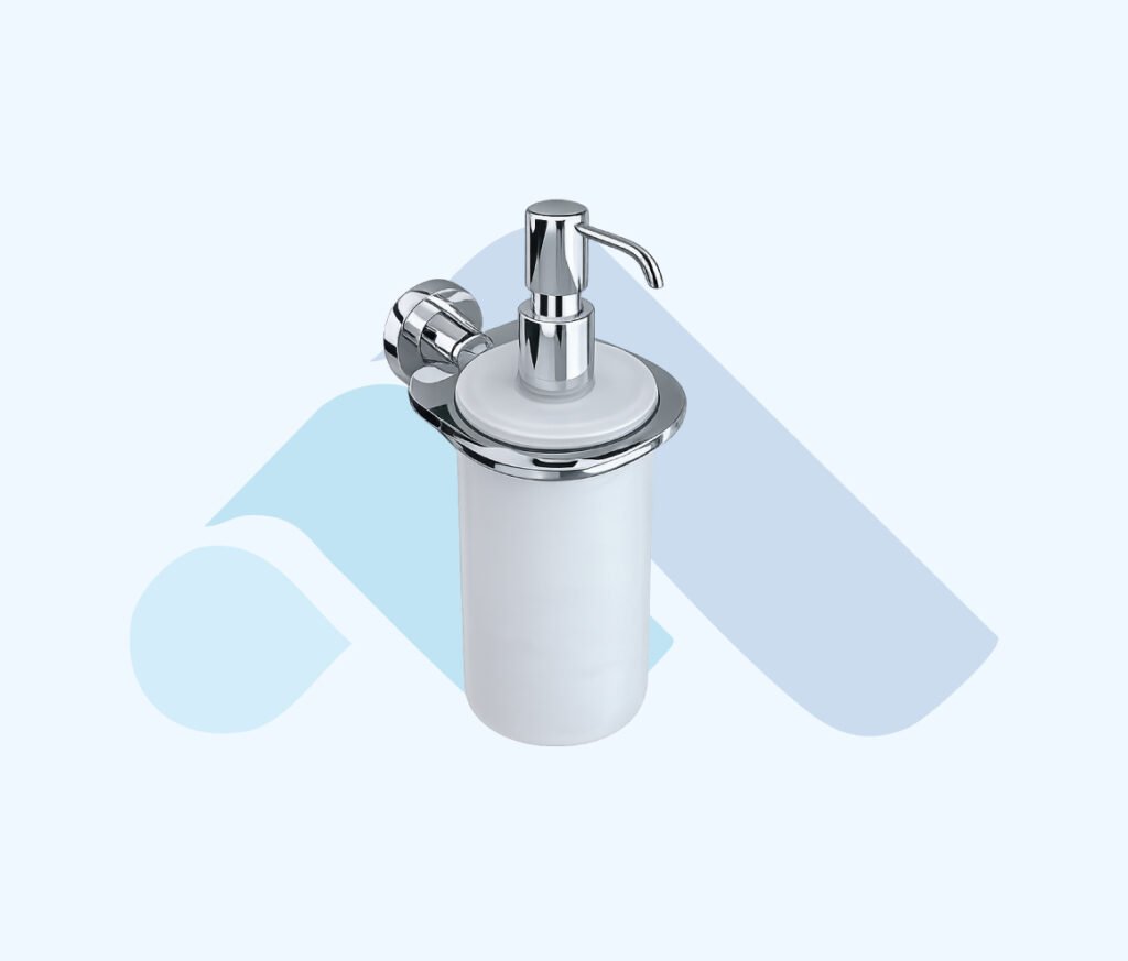 parlak krom kaplama metal pompa ve taşıyıcı gövdesi ile şık ve bütüncül bir tasarım sunar. Mat cam hazne, sıvı sabunun hijyenik ve kontrollü şekilde kullanılmasını sağlar.