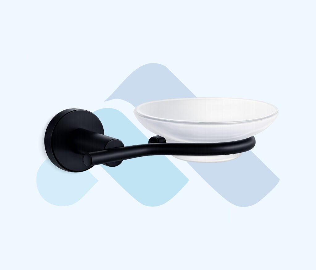 siyah kaplama metal taşıyıcı kolu ve yuvarlak rozet detayı ile yumuşak hatlara sahip modern bir tasarım sunar. Mat cam hazne, sabunun düzenli ve hijyenik şekilde kullanılmasını sağlar.