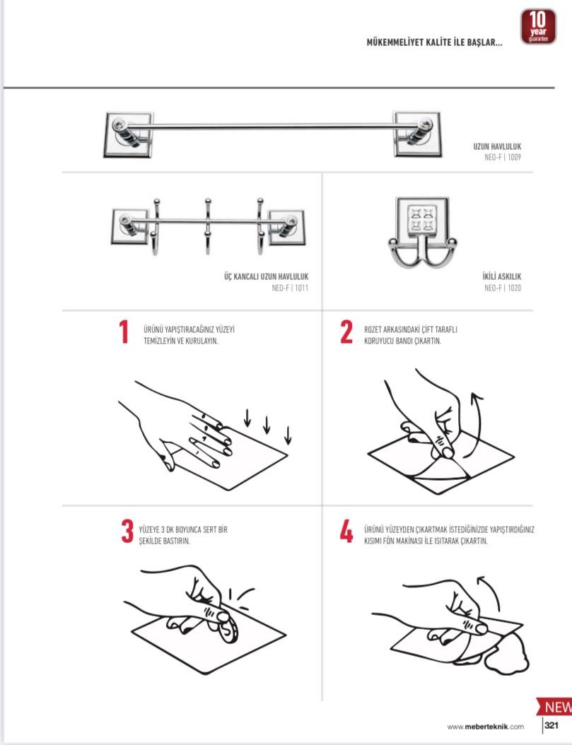 MEBER BANYO AKSESUARLARI YAPIŞKANLI SERİ KUVVETLI YAPIŞTIRICI İLE DELMEDEN MONTAJ YAPABİLİRSİNİZ.